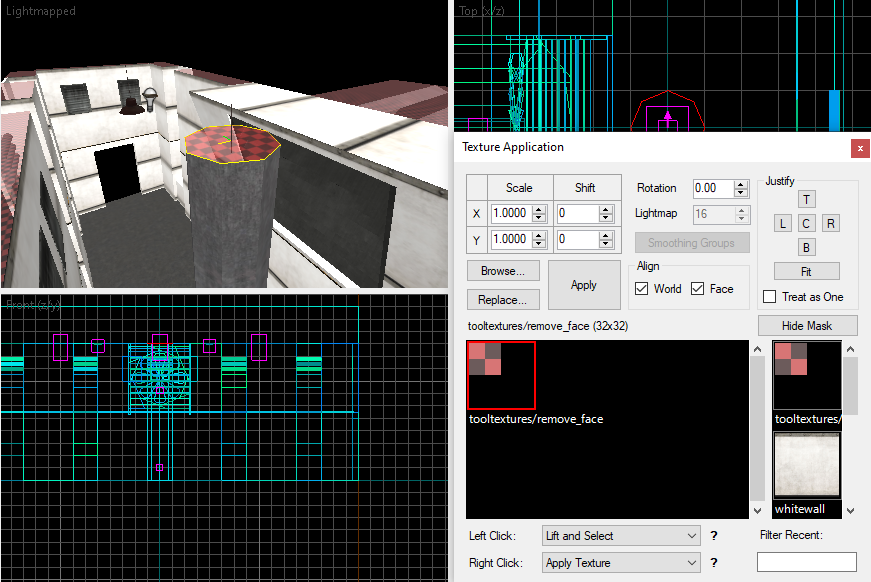 Sometimes, you’ll find that you don’t want all faces of your brush to have the same texture. It’s also inevitable that there will be certain faces that you want to remove, to improve in-game performance and lightmap rendering times.